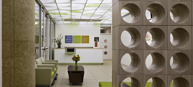 The Gateway School of New York is a LEED Silver Certified school (the first LEED CI certified education project in NYC). The project included a build-out of the 5th and 6th floors. The scope including entire classroom with interactive white boards, wet and dry labs, office /administrative space, a gym, library, workshops and grandstand flexible auditorium space. We also renovated the basement to include spaces for maintenance, mechanical and telecom/data.