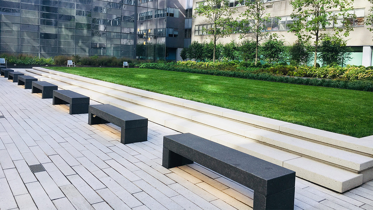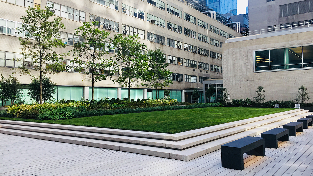 NYU Tisch Courtyard was renovated as a result of the devastation caused by Hurricane Sandy in 2012. In order to prevent another catastrophic flooding that caused the hospital to shut down, much of the new construction incorporates a new draining system, CETCO waterproofing, landscaping, new storm piping, and outdoor finishes.